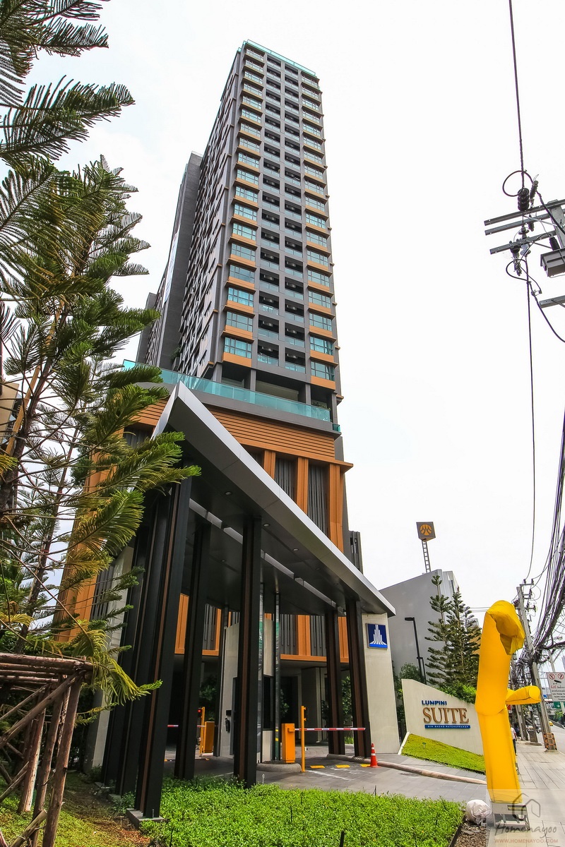 การออกแบบโครงการและวัสดุ : โครงการเป็นอาคาร High Rise 1 อาคาร สูง 30 ชั้น จำนวน 491 ยูนิต บนที่ดินประมาณ 2 ไร่ หน้าตาภายนอกของตัวอาคารดูดีแบบเรียบๆสไตล์ลุมพินี ฟังก์ชั่นตัวอาคาร ชั้น 1 – 6 เป็นที่จอดรถ ส่วนชั้น 7 – 30 จะเป็นส่วนของห้องพักอาศัย แบบห้องภายในโครงการมีทั้งหมด 3 แบบ คือแบบ Studio 24 ตร.ม., 1 Bedroom 28 ตร.ม., 2 Bedroom 48 ตร.ม.