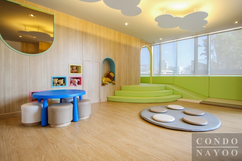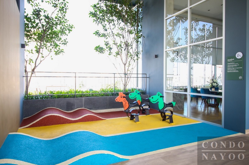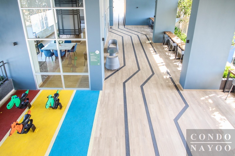 ส่วนกลางที่ชั้น 7 – 8 ที่อาคารห้องพักอาศัยและทางเดินเชื่อมไปยังสวน Rooftop บนอาคารจอดรถ ประกอบด้วย Housework Zone, Play Ground, Fittness, Learning Zone และส่วน Outdoor ที่อาคารจอดรถจะมี Infinity Edge Pool และ Sky Lounge ไล่ระดับค่ะ